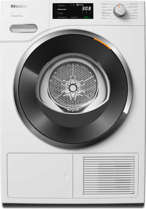 Dla pełnego komfortu połącz się z naszym systemem Miele@home, przez który można uzyskać dostęp do naszych suszarek do ubrań z każdego miejsca w domu i poza nim. Technologia EcoSpeed, umożliwiająca szybkie i bardziej wydajne suszenie prania . Z kolei system FragranceDos pozwala bez wysiłku wybrać jeden z dwóch ulubionych zapachów do suszarek bębnowych bez konieczności ich wymiany przez nawet 50 cykli.