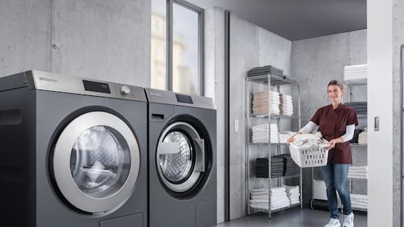 Koncepcja systemowa Miele Professional do wewnątrz zakładowego czyszczenia naczyń i prania