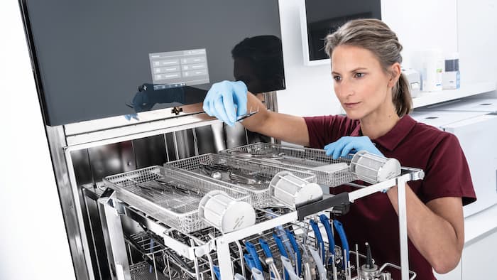 Dzięki programom, akcesoriom i środkom chemicznym zaprojektowanym specjalnie dla sektora stomatologicznego profesjonalne maszynowe reprocesowanie za pomocą termodezynfektora pozwala osiągnąć najwyższy poziom higieny, którego nie da się osiągnąć innymi metodami. Eliminując ręczną obsługę narzędzi, gabinety stomatologiczne mogą również zapewnić kontrolę zakażeń z myślą o zdrowiu i bezpieczeństwe personelu i pacjentów.