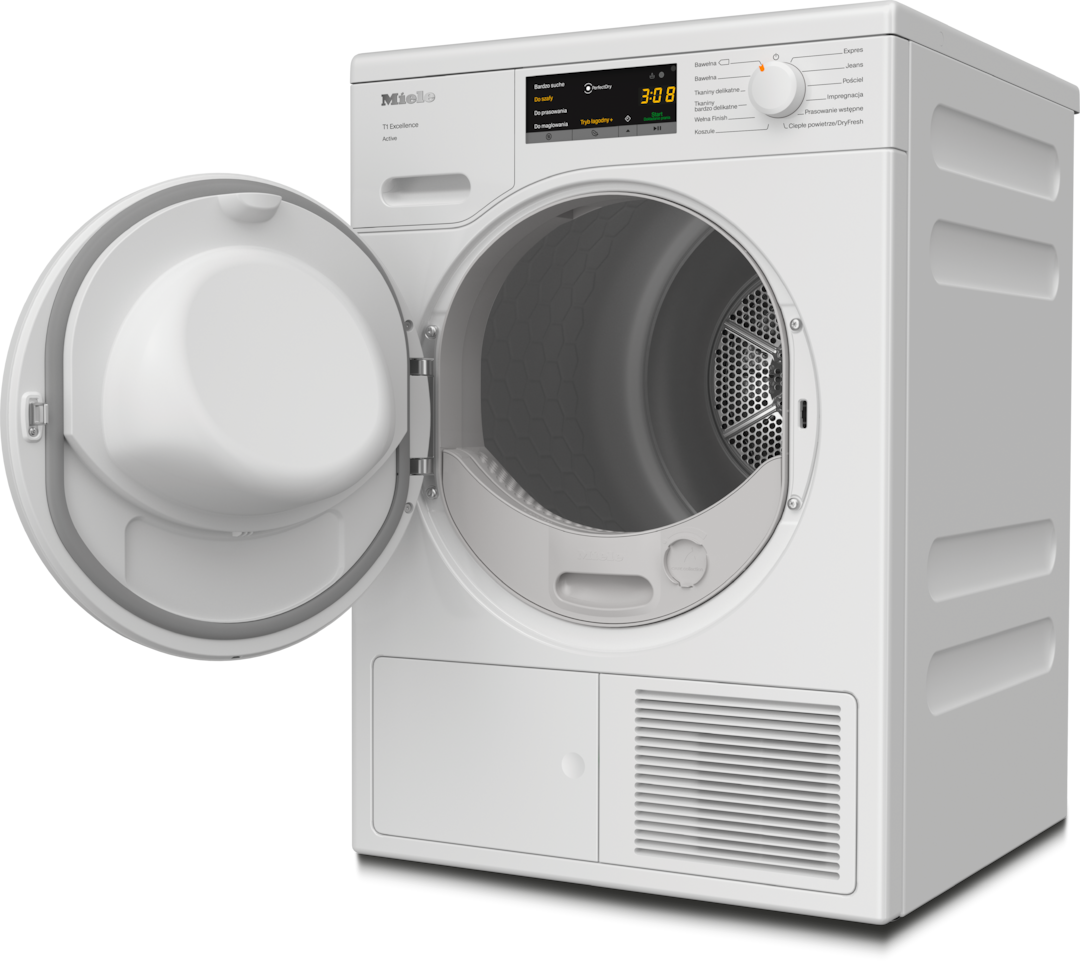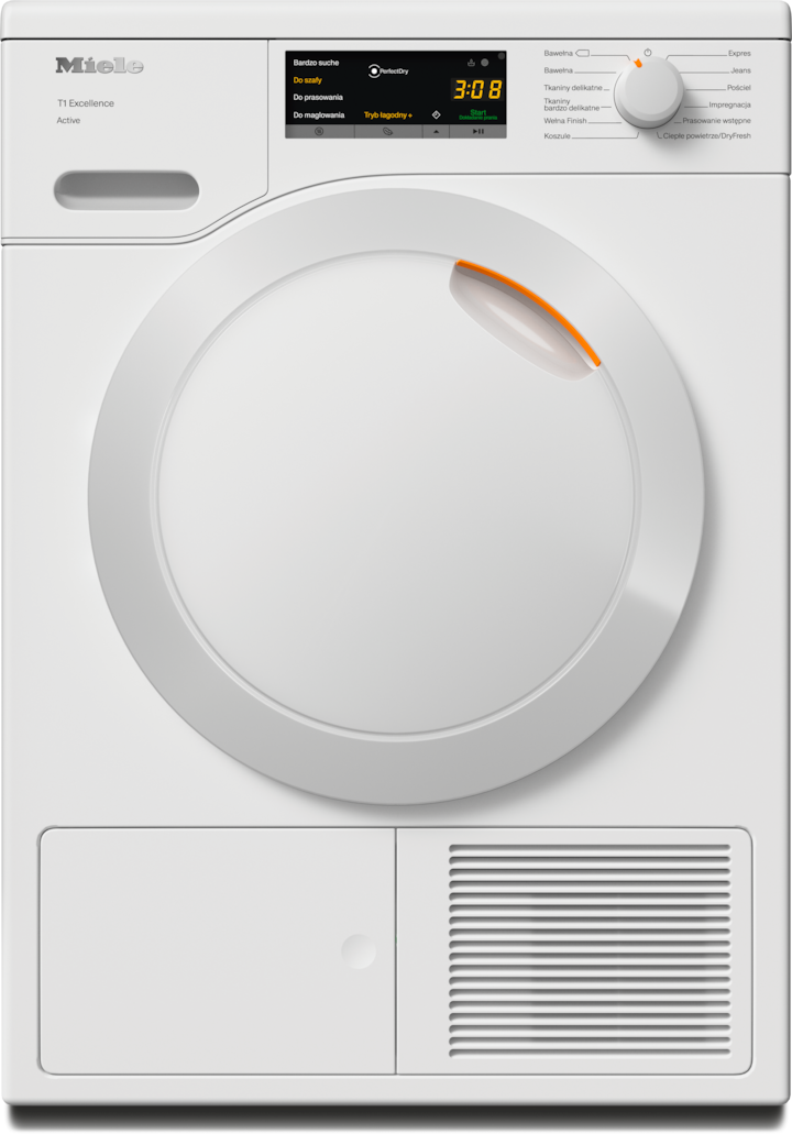 • 4.Podczas fazy rozwoju serii suszarek bębnowych T1 / T2 firma Miele przetestowała modele i główne komponenty w 5000 cyklach suszenia (= 5 cykli suszenia tygodniowo przez 50 tygodni w roku) w różnych programach. More: miele.com/20years