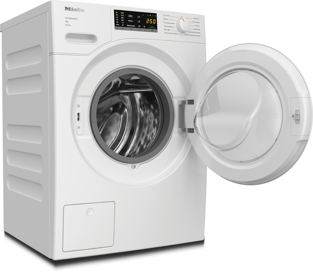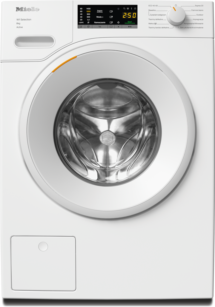 - 5.W fazie rozwoju serii pralnic W1 / W2 firma Miele przetestowała modele i główne komponenty w 5000 wsadów prania (= 5 wsadów prania tygodniowo przez 50 tygodni w roku) w różnych programach. More: miele.com/20years