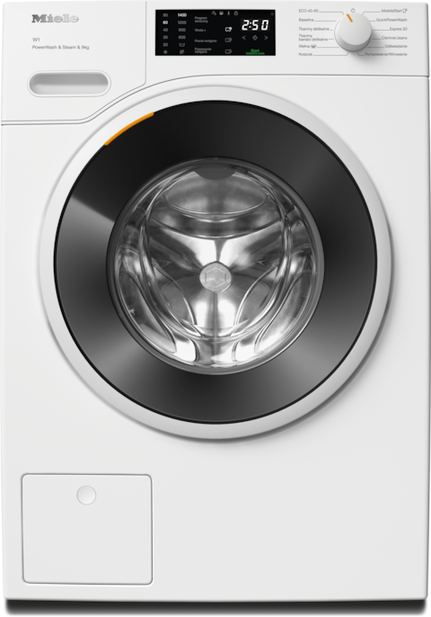 - 7.W fazie rozwoju serii pralnic W1 / W2 firma Miele przetestowała modele i główne komponenty w 5000 wsadów prania (= 5 wsadów prania tygodniowo przez 50 tygodni w roku) w różnych programach. More: miele.com/20years