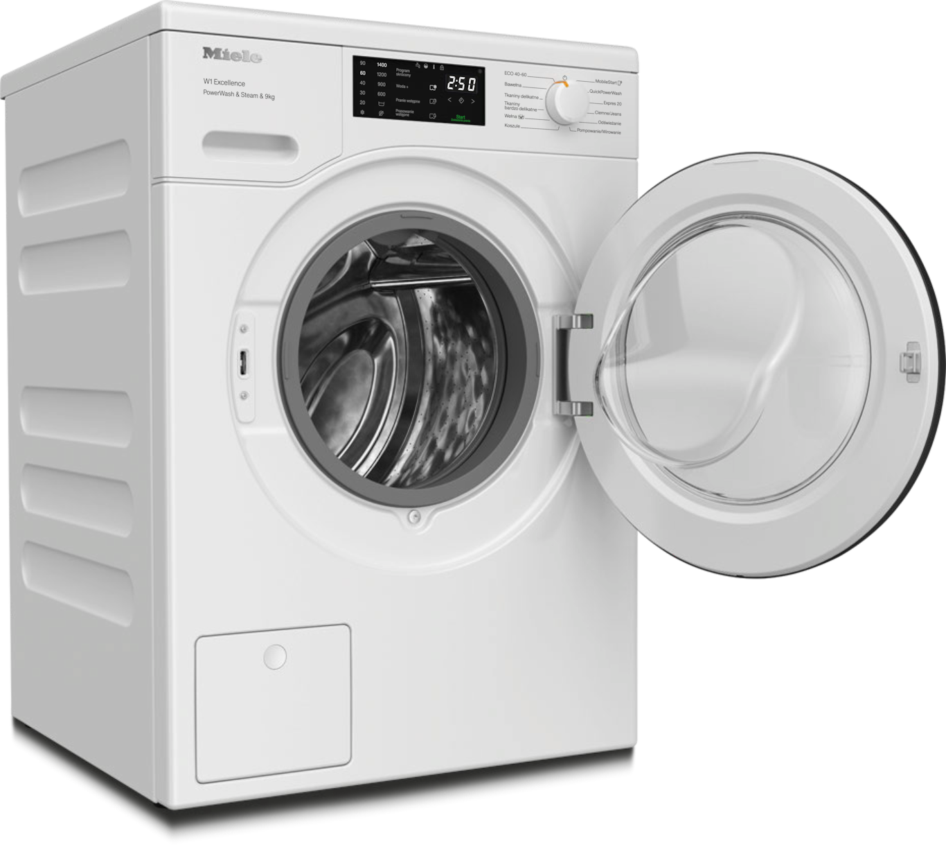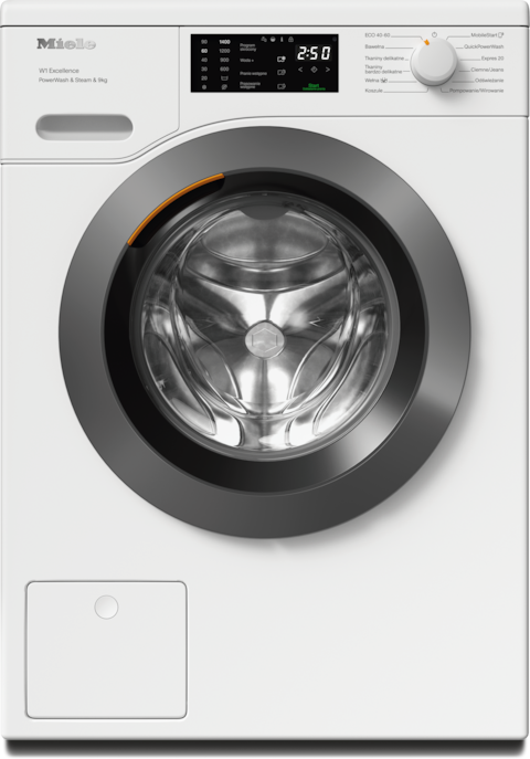 - 7.W fazie rozwoju serii pralnic W1 / W2 firma Miele przetestowała modele i główne komponenty w 5000 wsadów prania (= 5 wsadów prania tygodniowo przez 50 tygodni w roku) w różnych programach. More: miele.com/20years