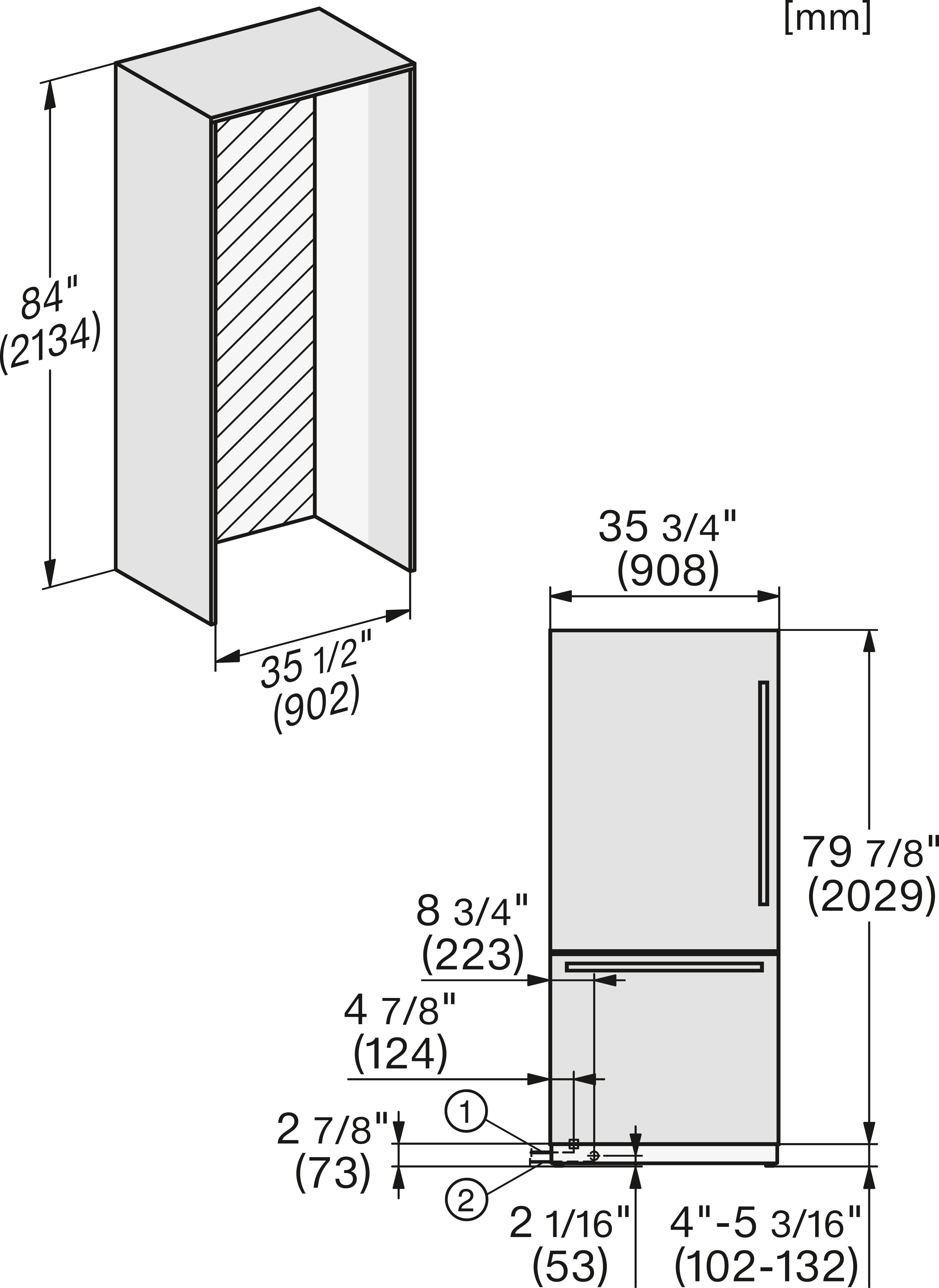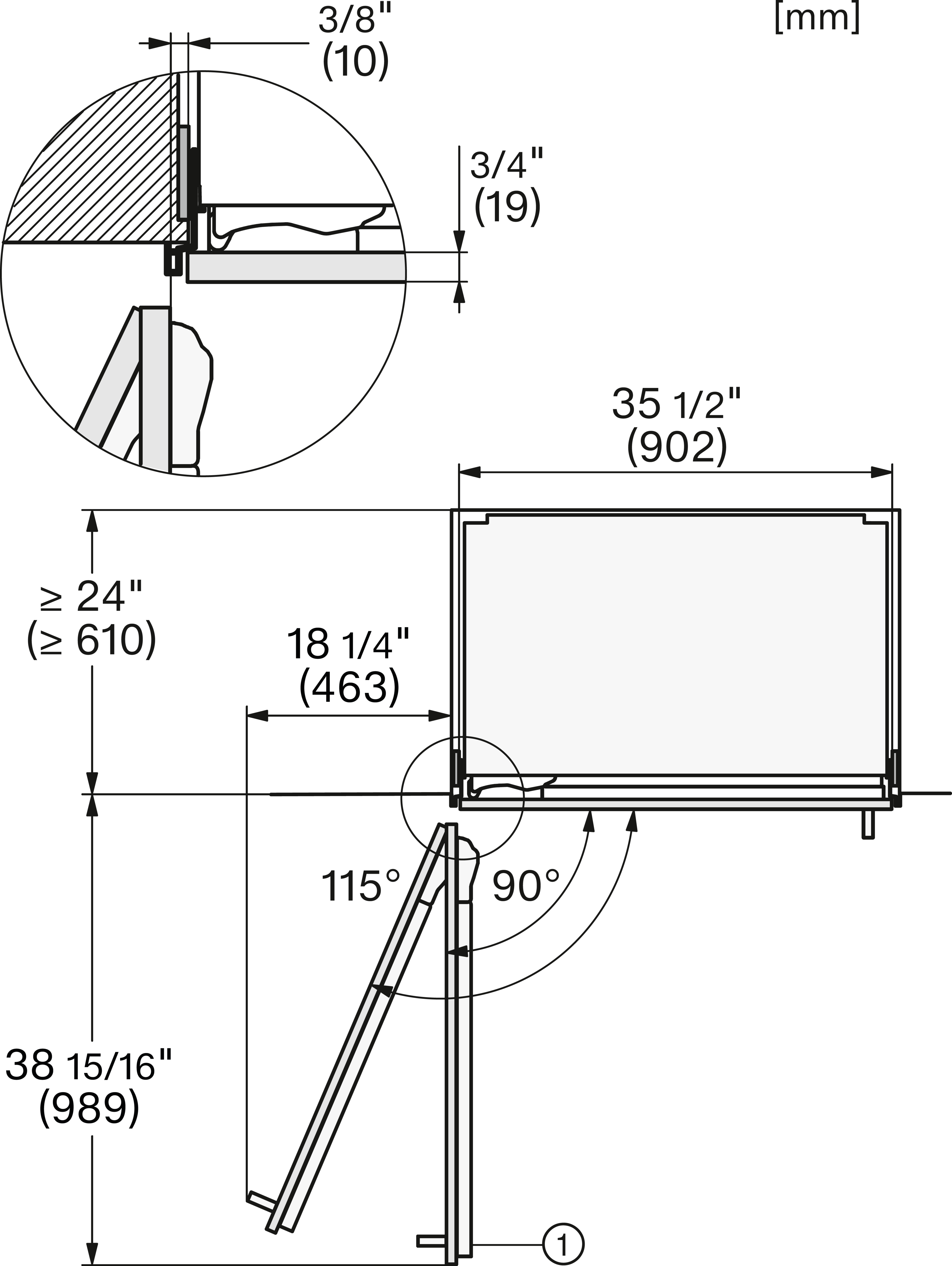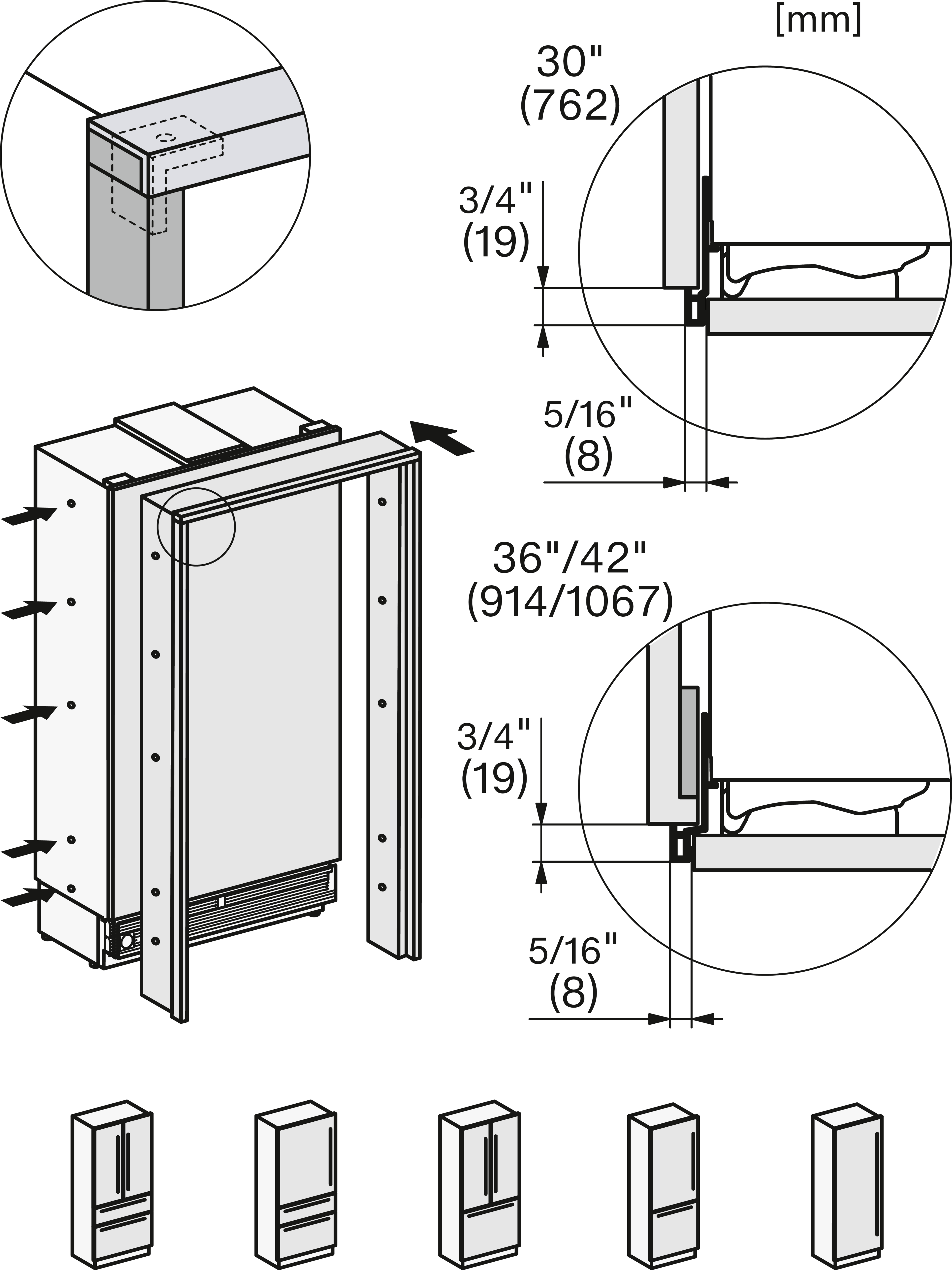 KFMC3632R+L, KFMC3642R+L, KFMC3836R+L, KFMC3834R+L, KFMC3858FD, MasterCool III, Side-view bottom, installation