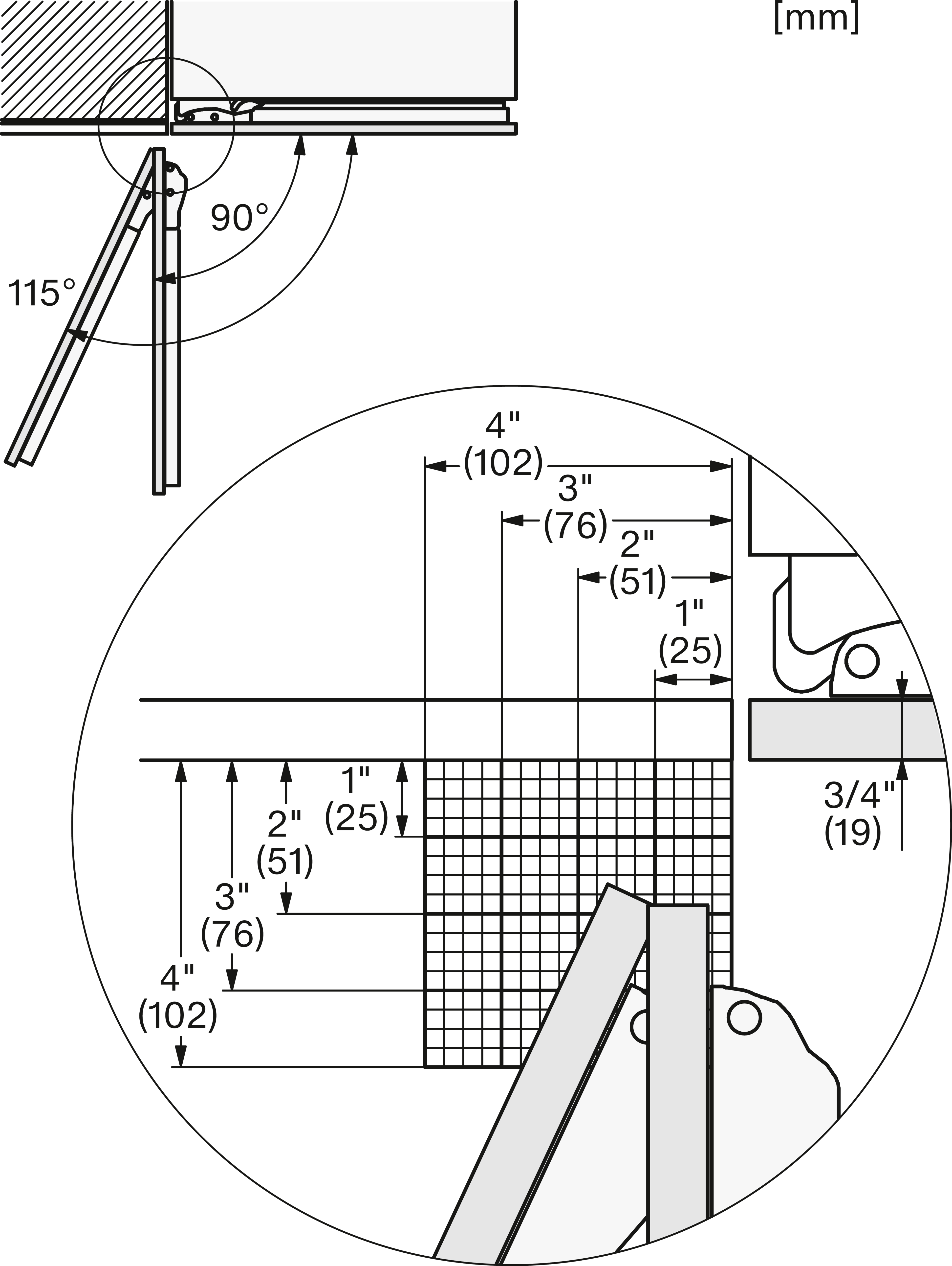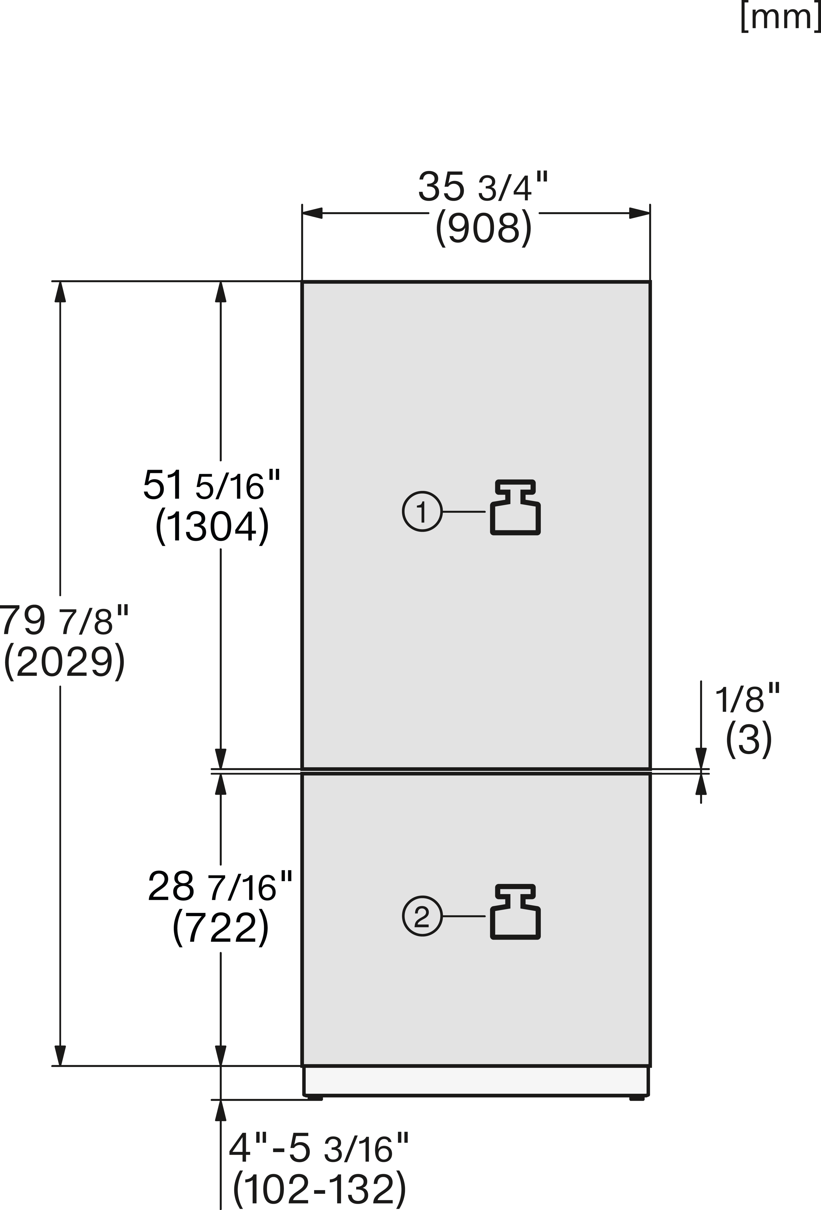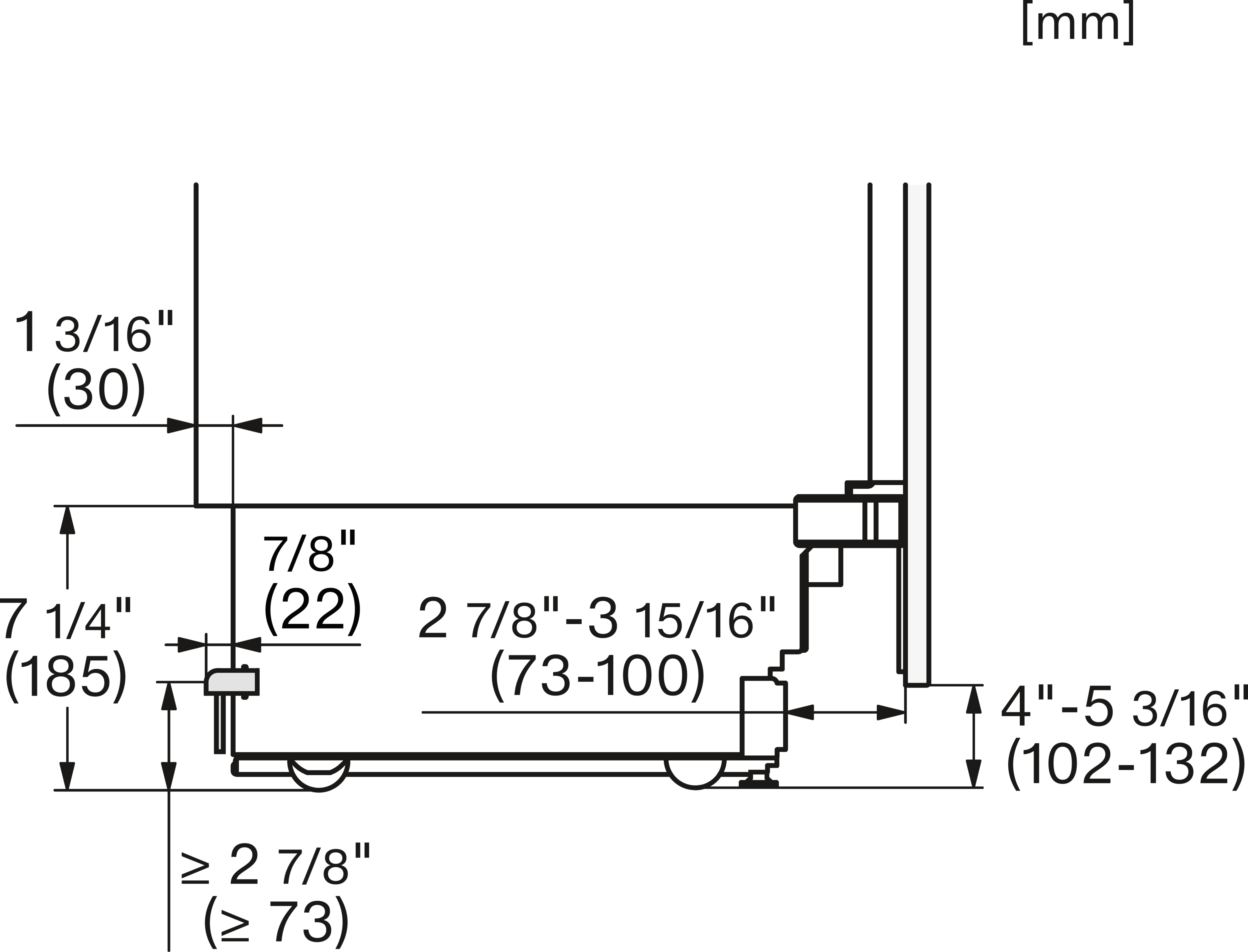 KFMC3632R+L, KFMC3642R+L, KFMC3836R+L, KFMC3834R+L, KFMC3858FD, MasterCool III, Side-view bottom, installation