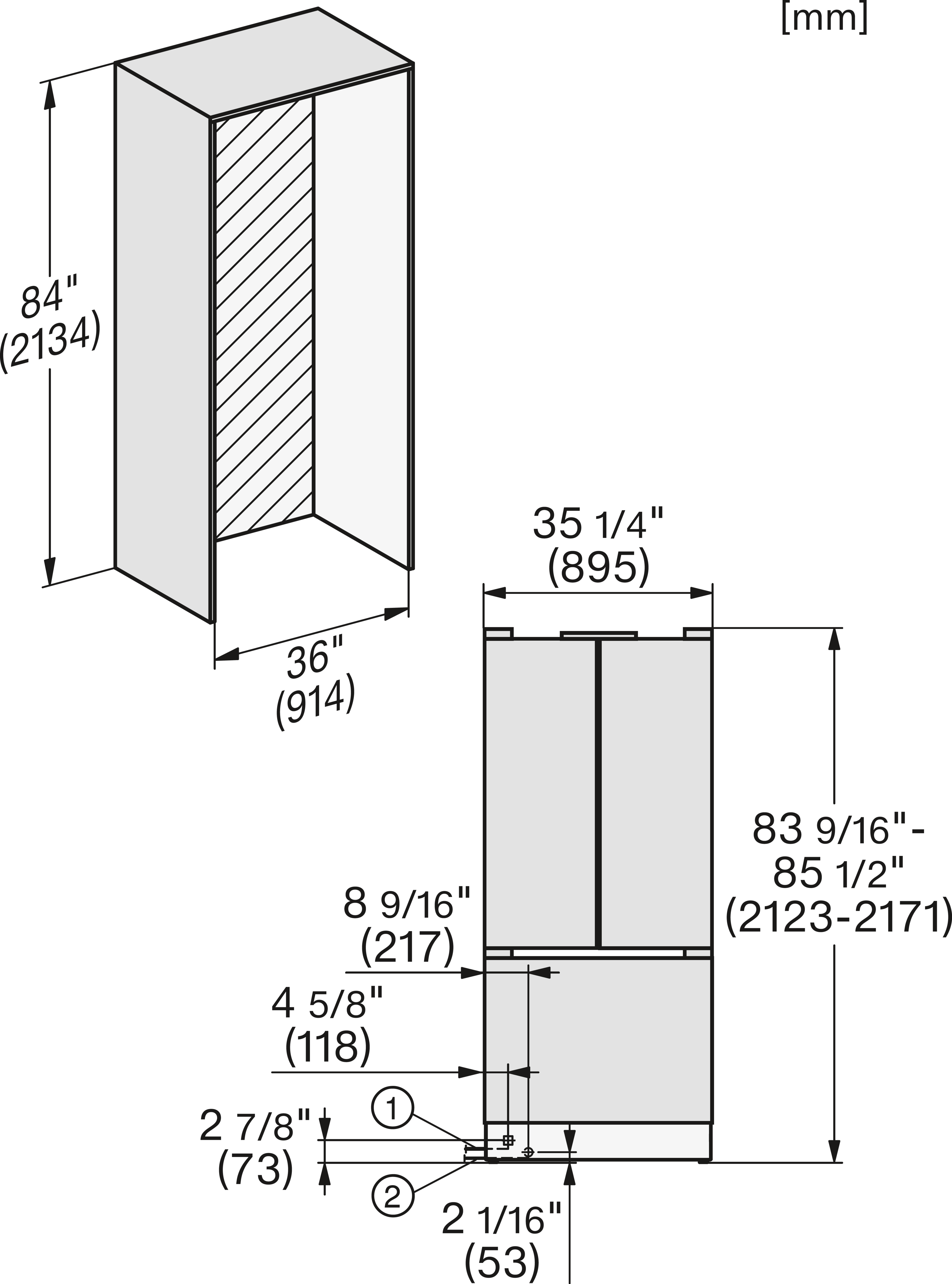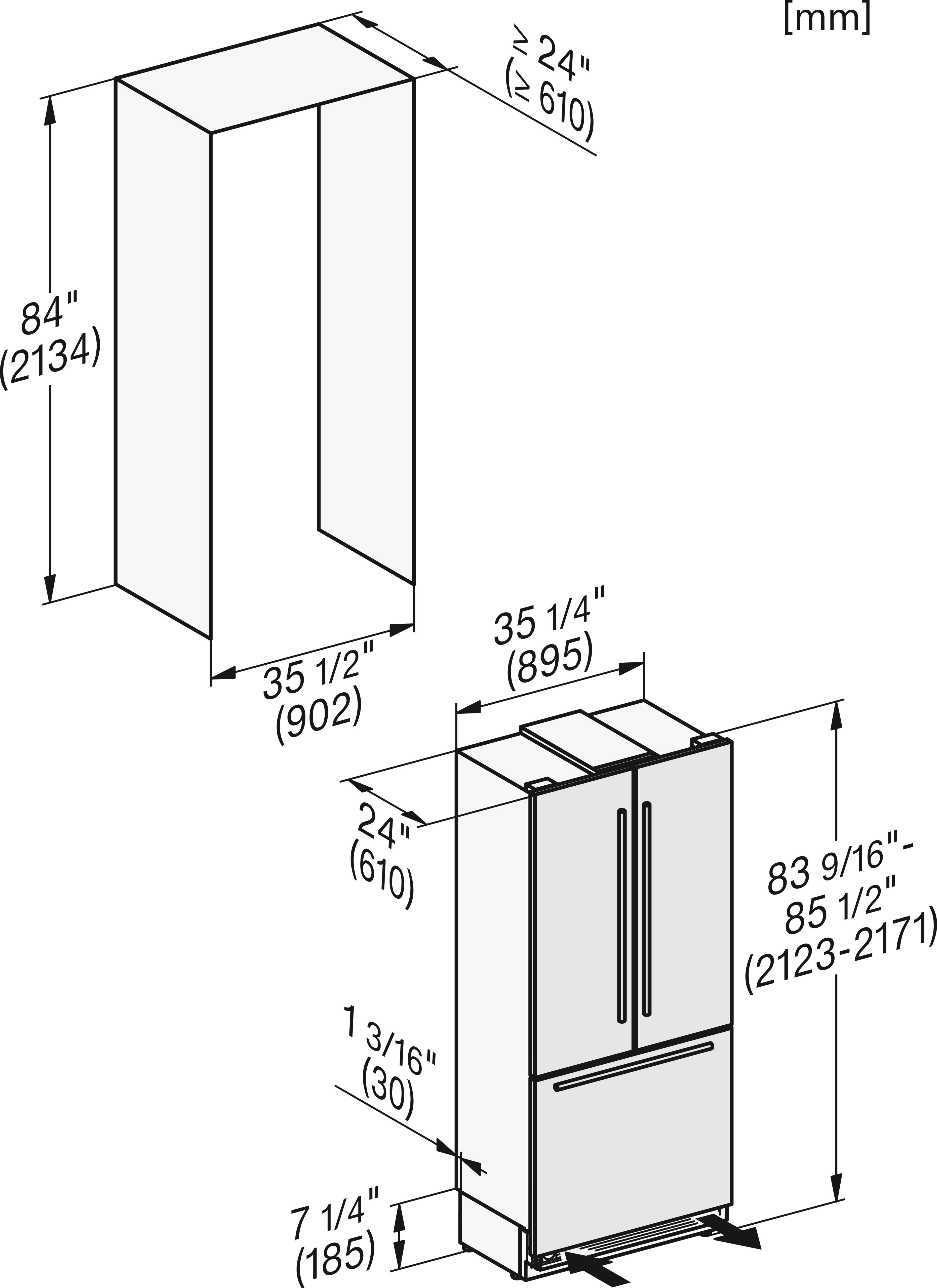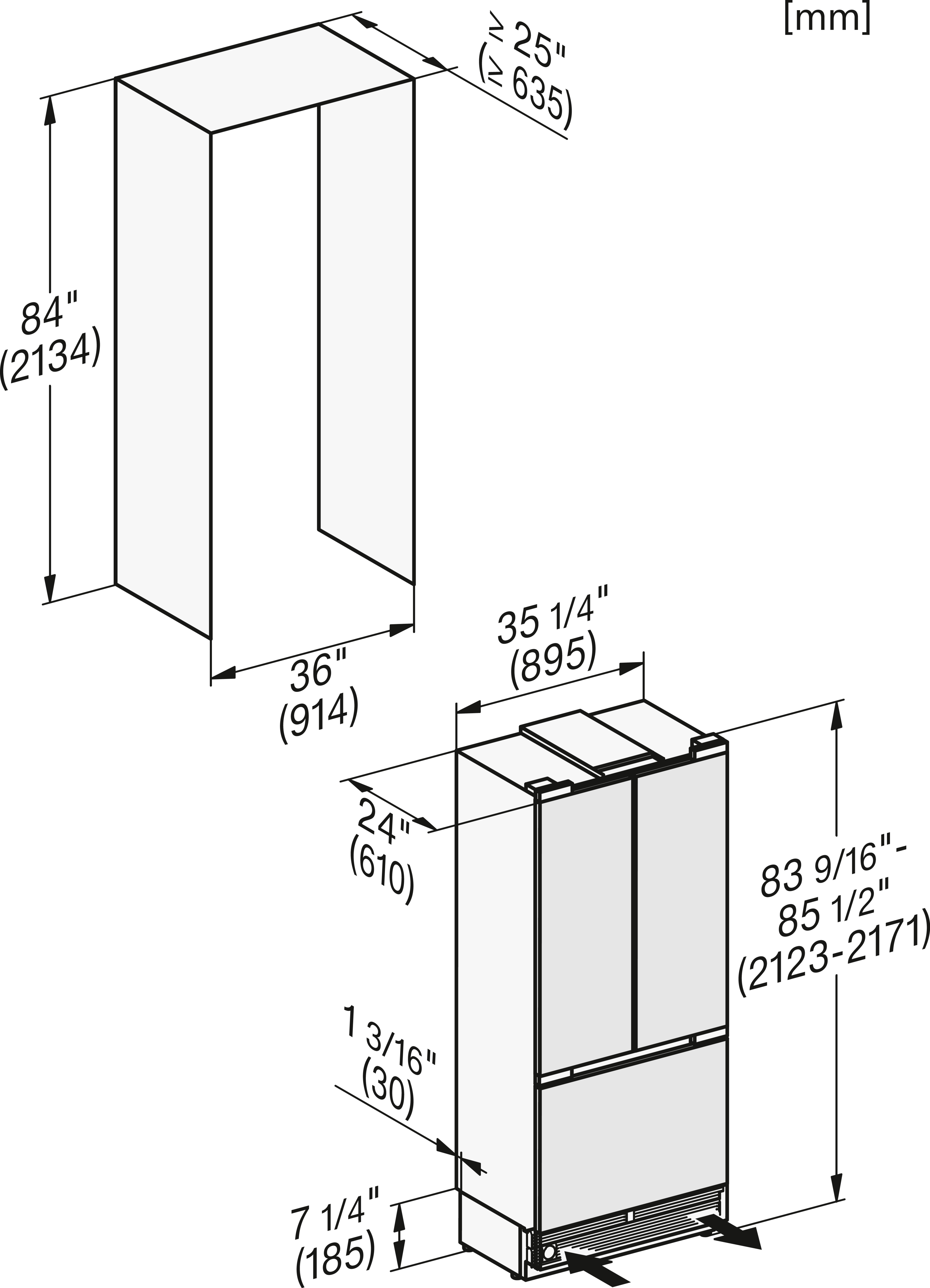 KFMC3632R+L, KFMC3642R+L, KFMC3836R+L, KFMC3834R+L, KFMC3858FD, MasterCool III, Side-view bottom, installation