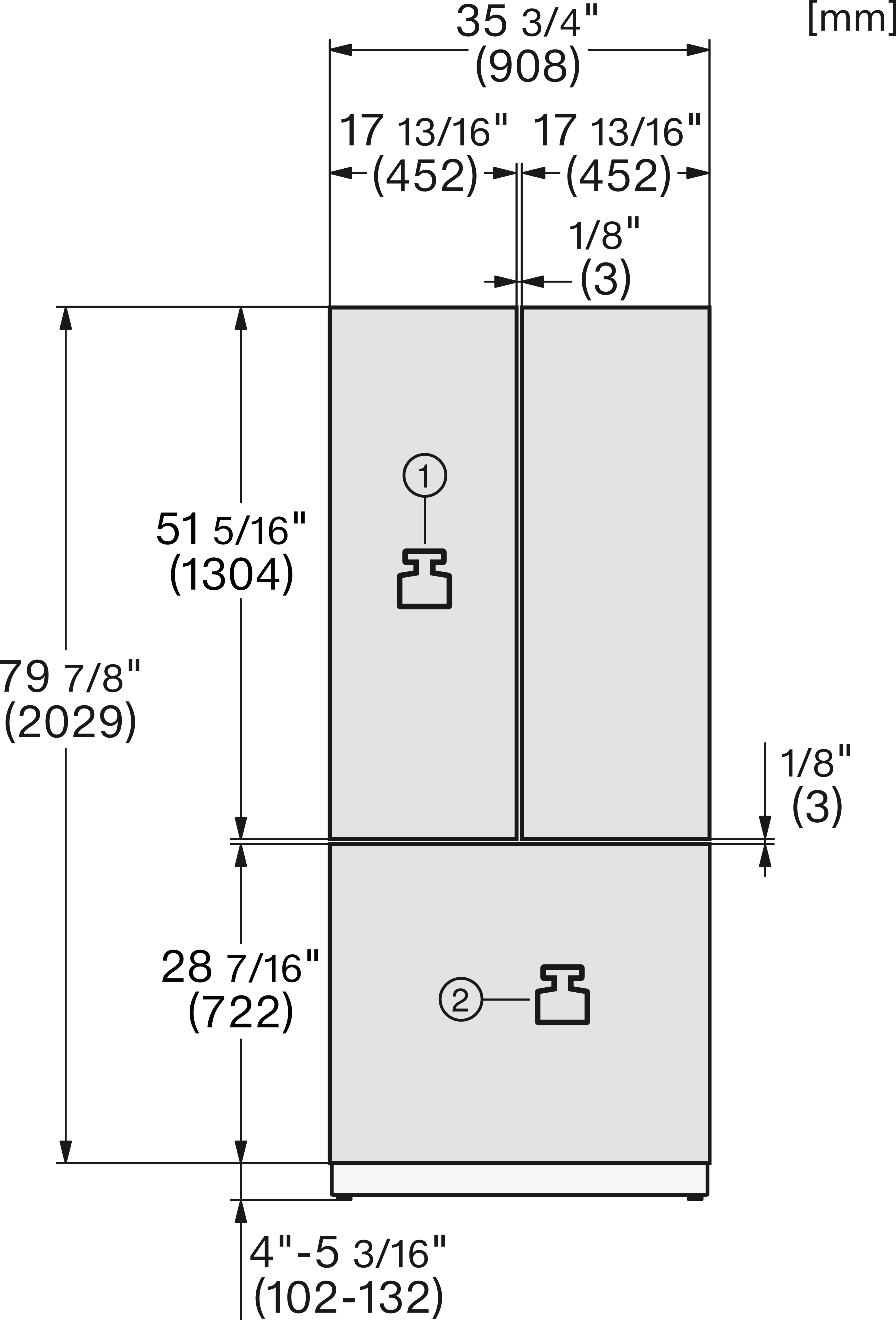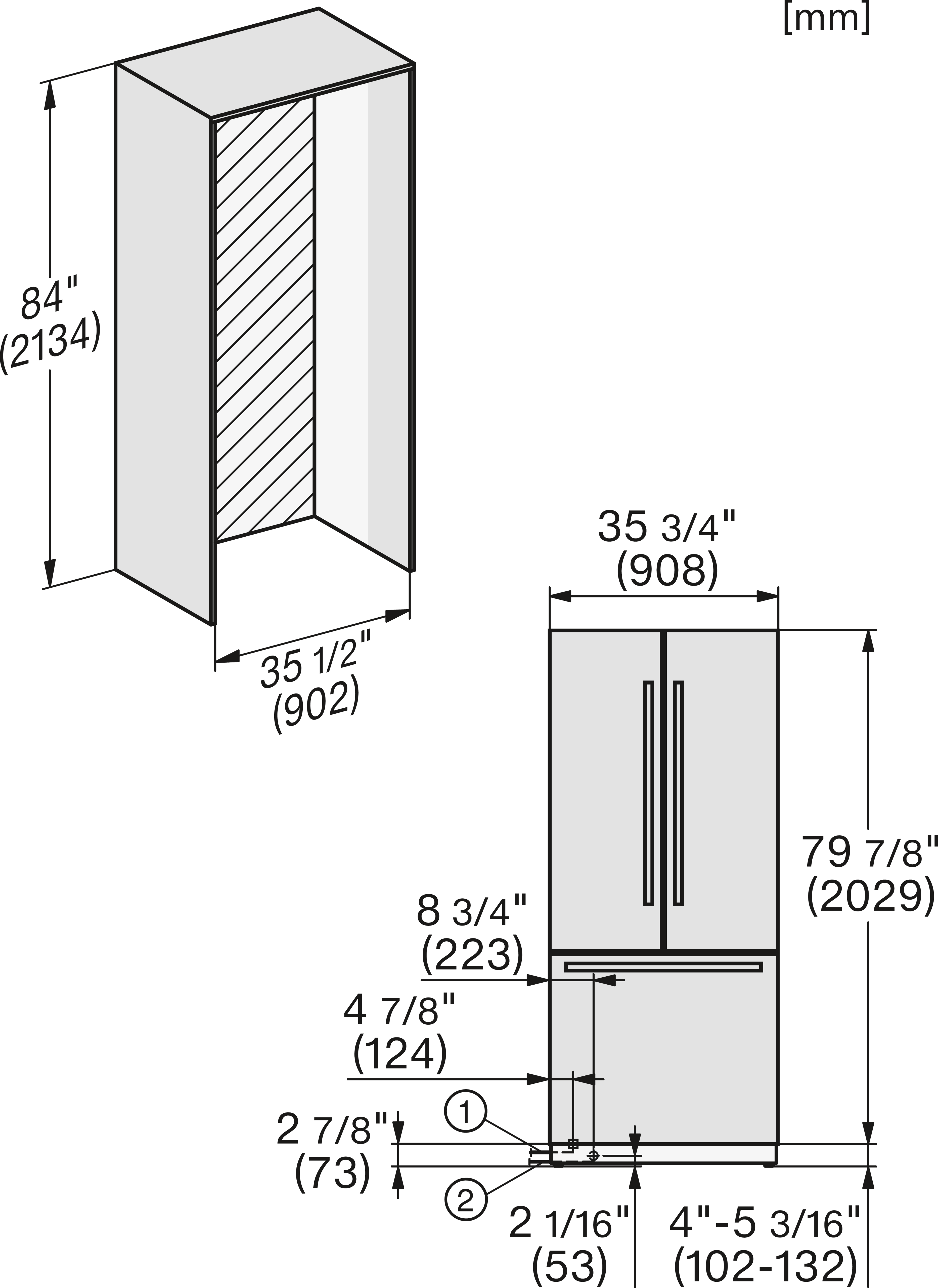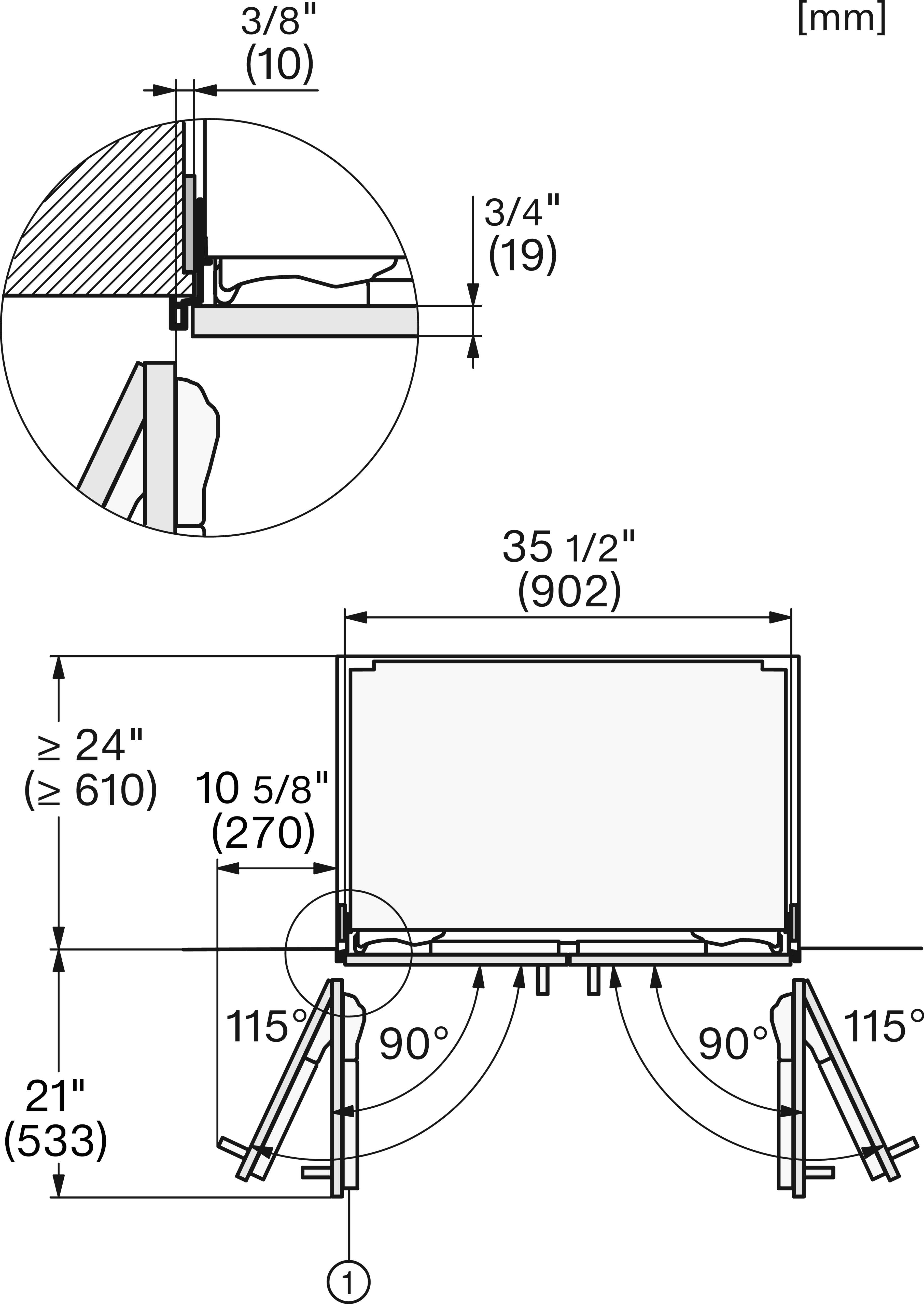 KFMC3632R+L, KFMC3642R+L, KFMC3836R+L, KFMC3834R+L, KFMC3858FD, MasterCool III, Side-view bottom, installation